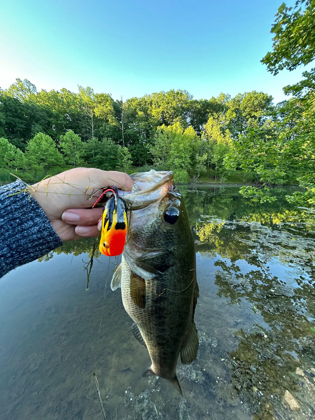 Caught a few big ones with this Poppin Frog last weekend… man, the topwater action is fun! You just walk it slowly and… bam! Fish on haha. Perfect for weedy spots.